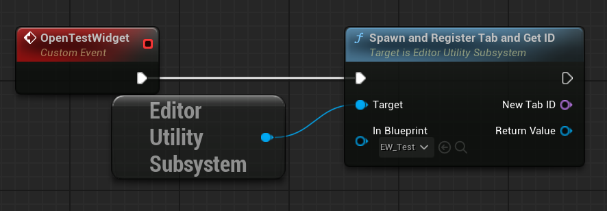 Create a new event called OpenTestWidget (matching the name you configured in the first entry of ToolbarMenuEntries). For every button entry you add, you’ll need to manually create a corresponding event like this.