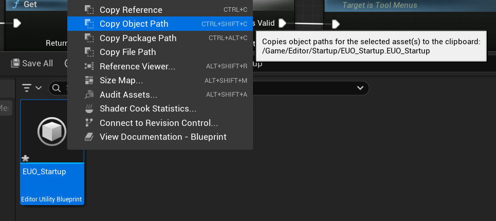 Now create new Editor Utility Object Blueprint and name it EUO_Startup.