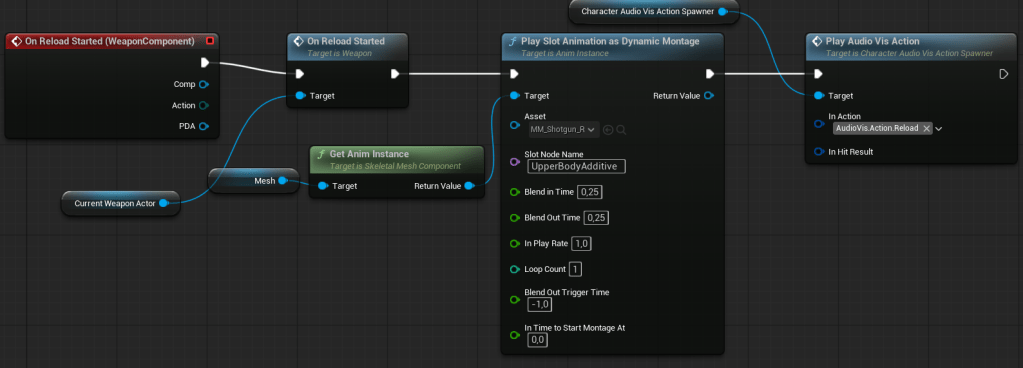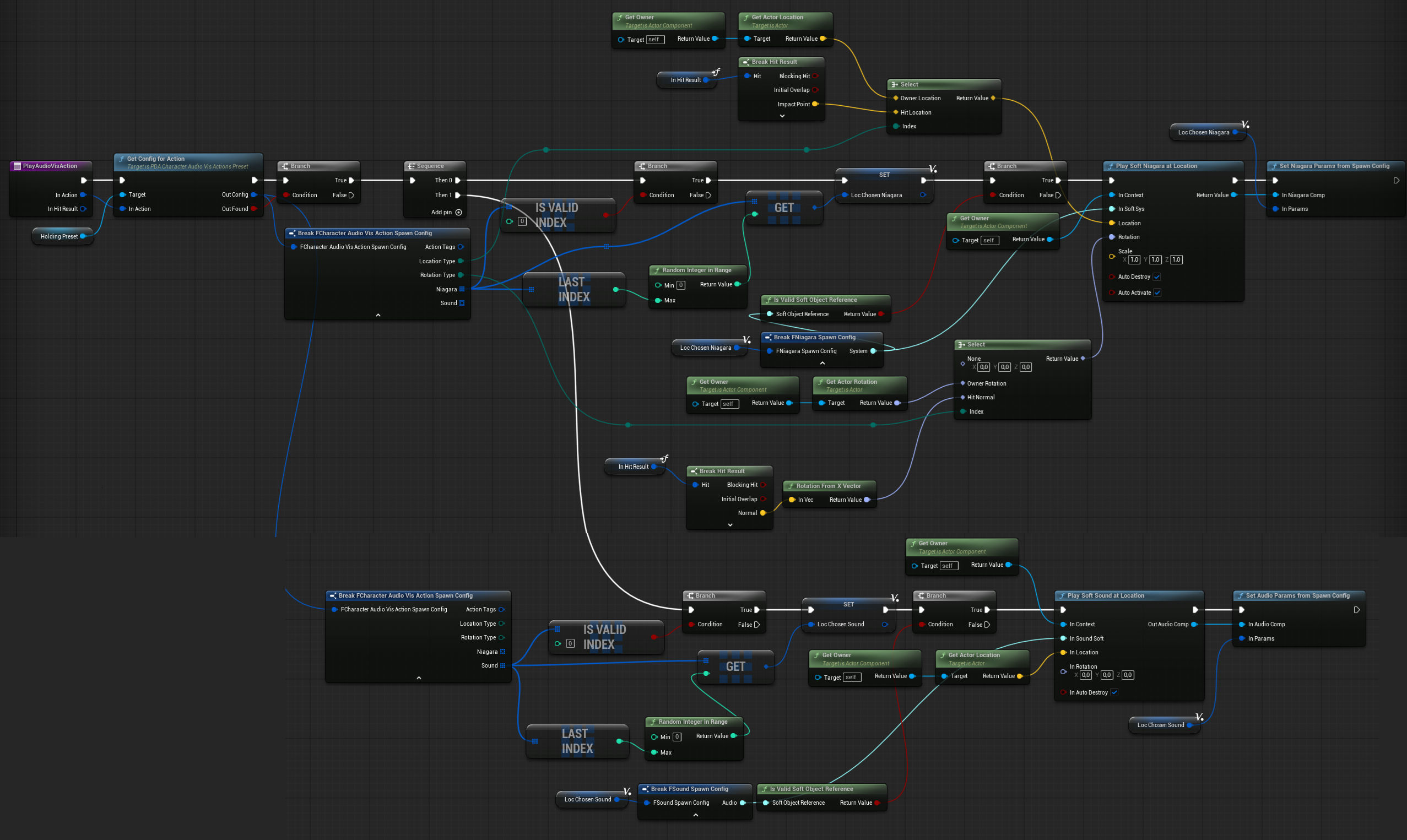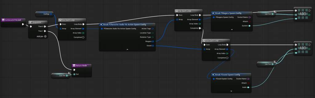 This part of the system will handle playing sounds and spawning Niagara effects based on action tags. For example: dying, firing, reloading—basically anything the character can do.