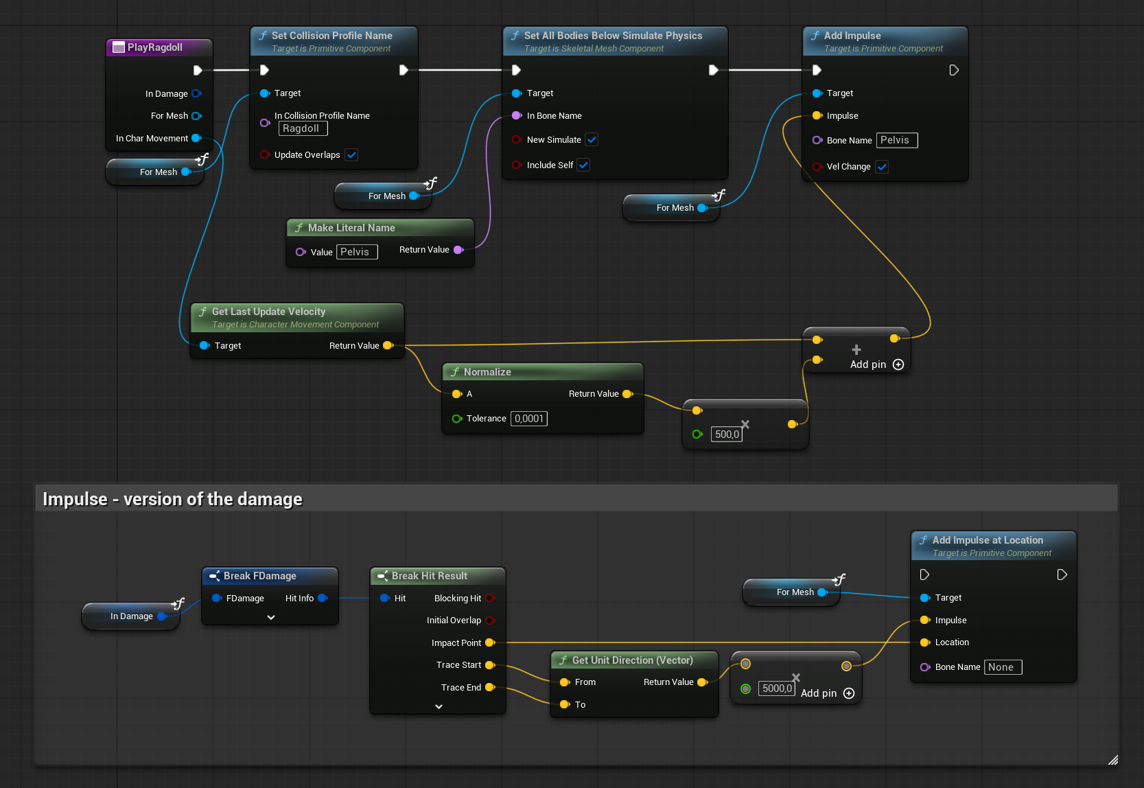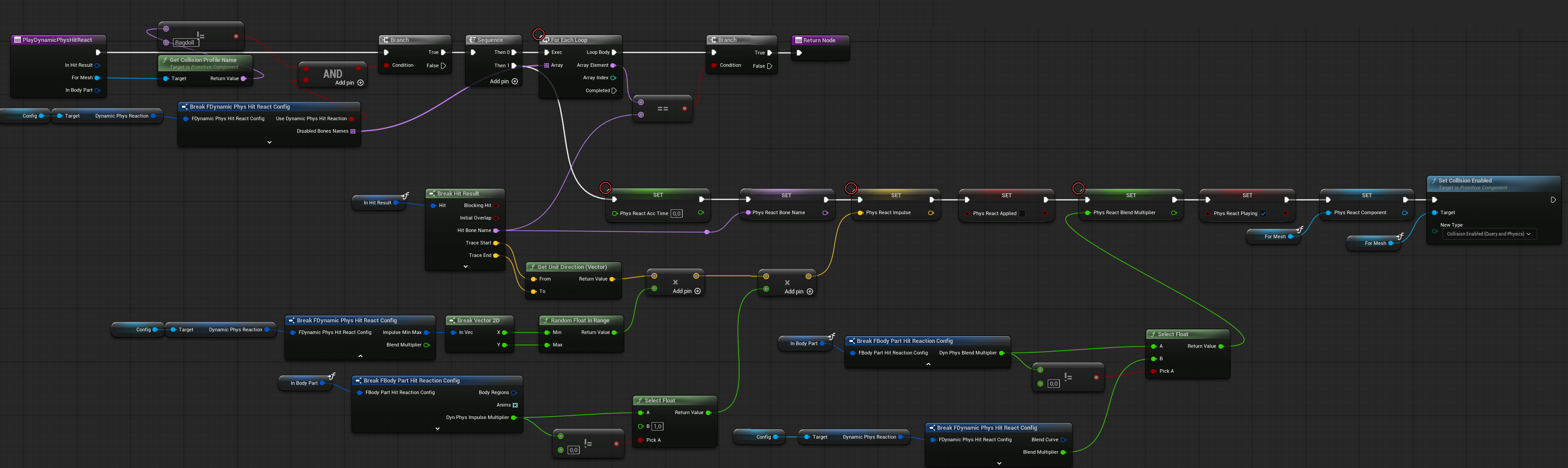 This simple setup works well enough for general reactions without getting bogged down in per-bone / per Physical Material precision.