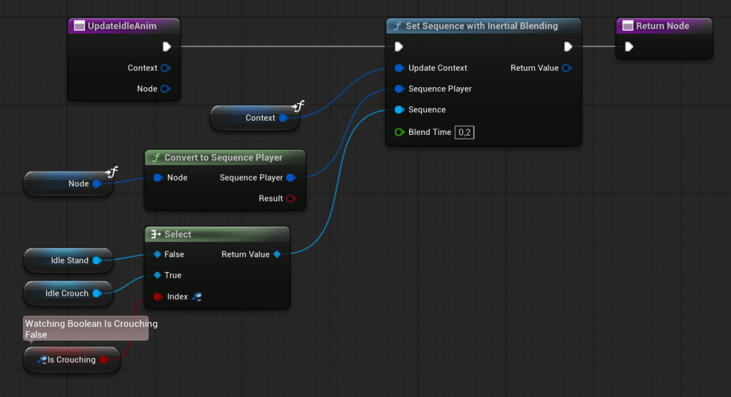 We’ll retarget animations from the Lyra game to the Infiltrator character. The Animation Blueprint will support basic locomotion, additive animations, simple IK for hands and looking direction, and layered upper-body animations.