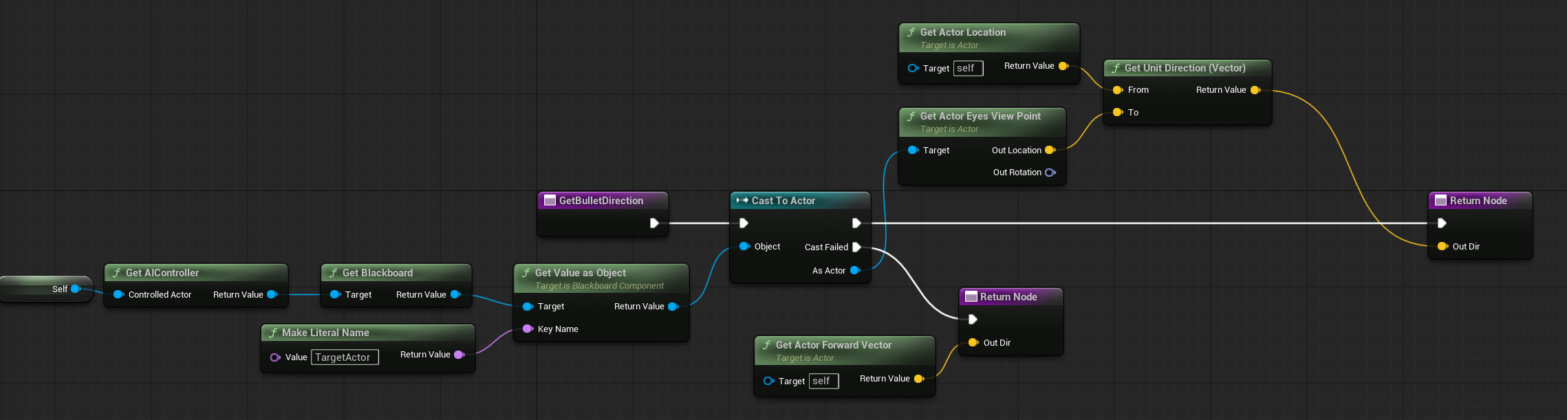 BTTask_GetTarget. This does the same thing as the Update Service. We use a Task here because we want to get the target as quickly as possible, and the Update Service is not called every frame.