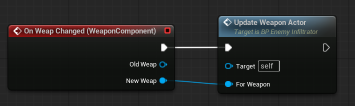 Just like in the Player Pawn, we set up the weapon actor whenever the Weapon Component changes the weapon.