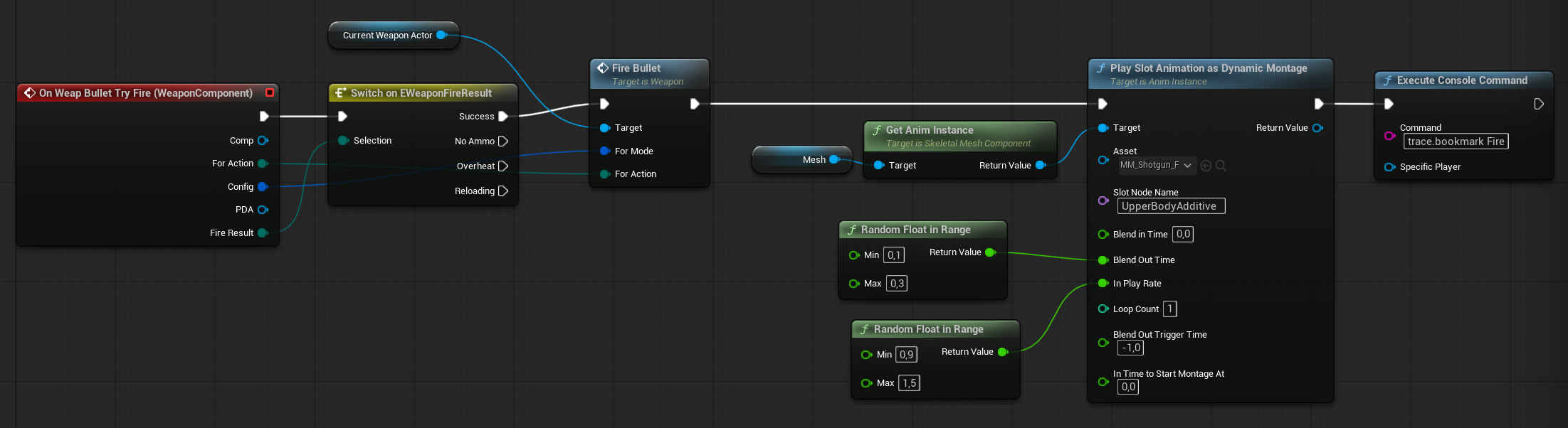 Just like in the Player Pawn, we fire the bullet when the Weapon Component calls for it.