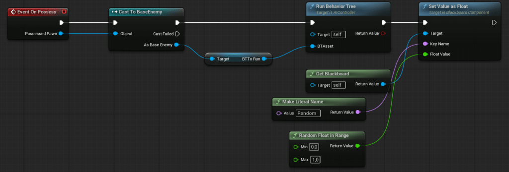 Normally, for AIs like this, I wouldn’t use AI Controllers, Behavior Trees, or Blackboards. Instead, I’d implement the AI using a state machine, a simple component, or even directly in the Character class — it depends on the character.