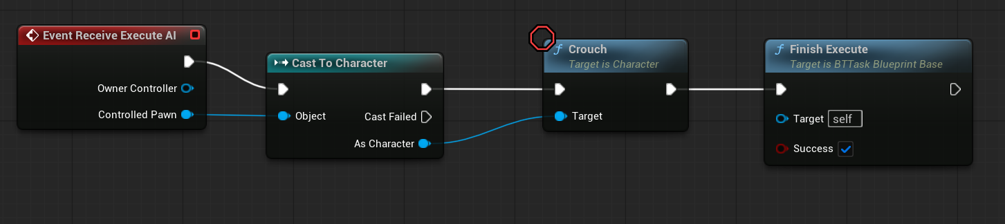 BTTask_Crouch. Really simple – just call Crouch function on the controlled Pawn.