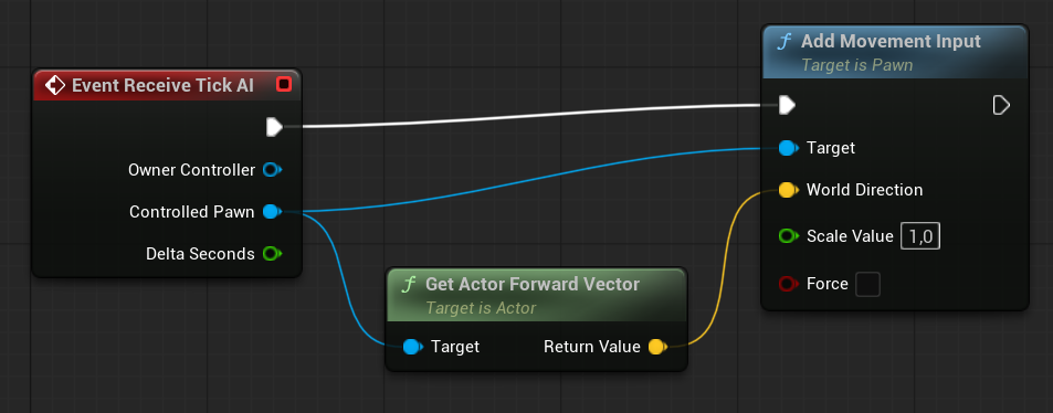 BTTask_MoveForward. As you can see, this task uses Tick and constantly adds forward movement input for the AI. Yes—our AI doesn’t use navigation movement; they simply move forward.