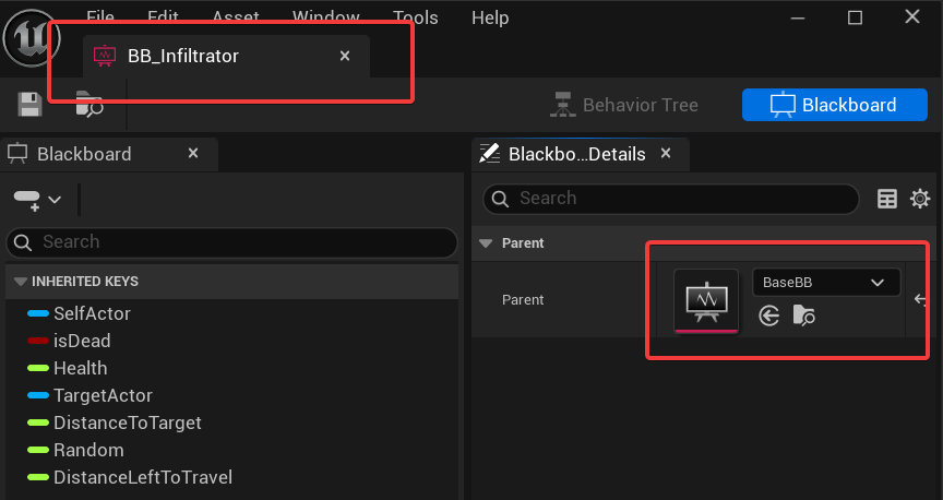 I can add custom data to the BB_Infiltrator blackboard while still using the base data from the default blackboard. This allows for a more object-oriented approach when designing your blackboards.