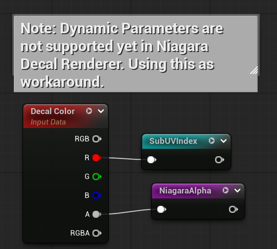 Also, the SubUV selection was moved from Niagara to the Material, since SubUV modules in Niagara only work with Sprite Renderers, not Decal Renderers.
