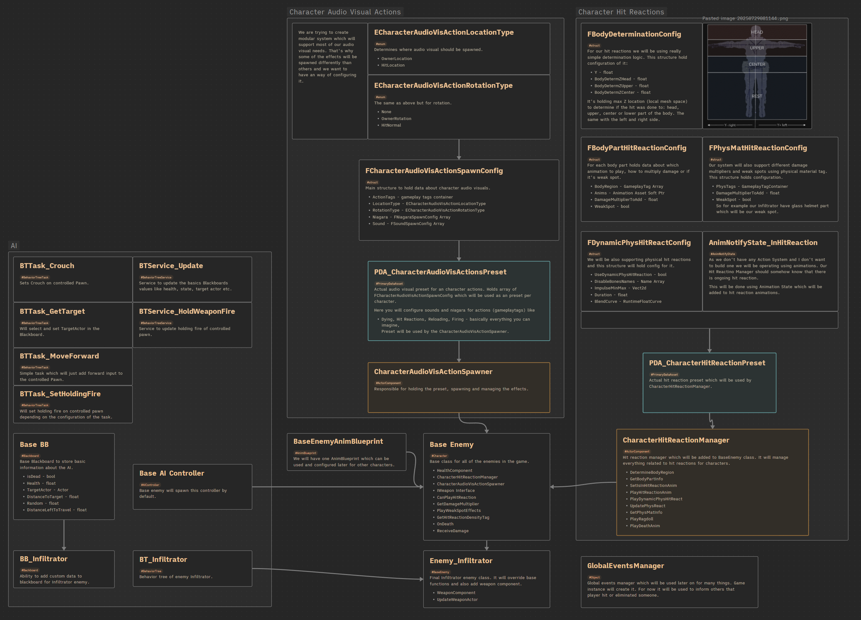 This post covers a lot of different topics, but that was intentional—I wanted to show how many systems are connected to the enemies. Later on, adding new enemies will be much easier.