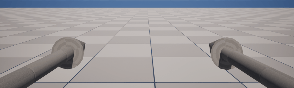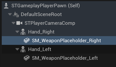 Two invisible skeletal meshes for hands attached to the camera, each with a placeholder static mesh weapon attached.