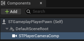 Open STGameplayPlayerPawn and add the STPlayerCameraComp component.