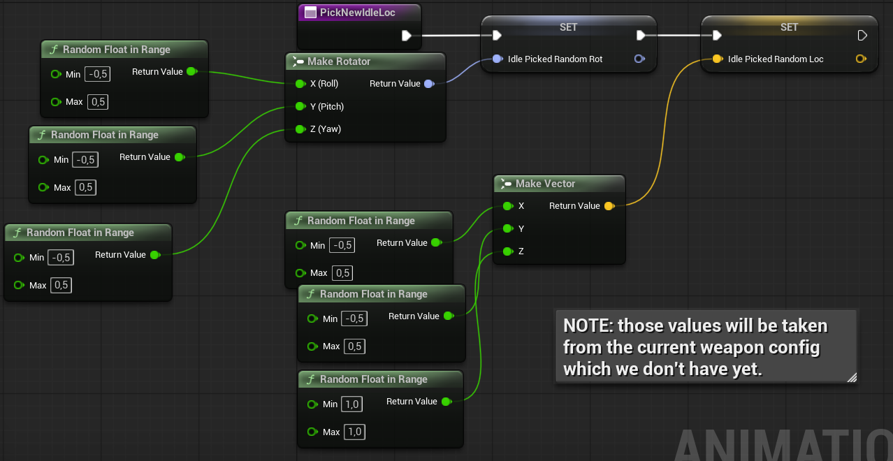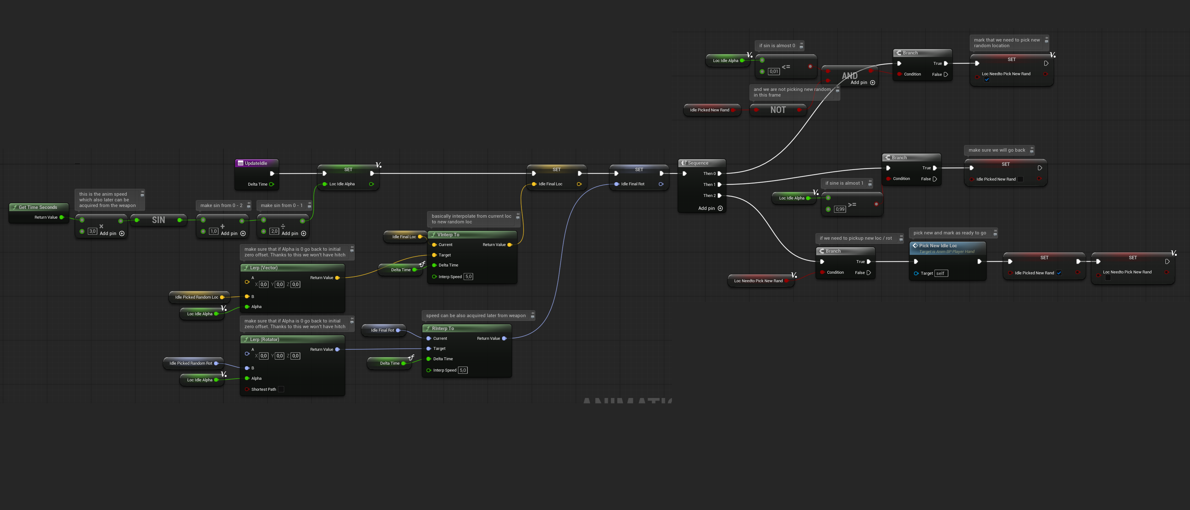 I’ve added comments inside the function to explain the logic. It’s pretty straightforward: the idle alpha goes from 0 to 1, and when it gets close to 0, it picks a new random location and rotation. This prevents any sudden jumps and makes the animation look natural.