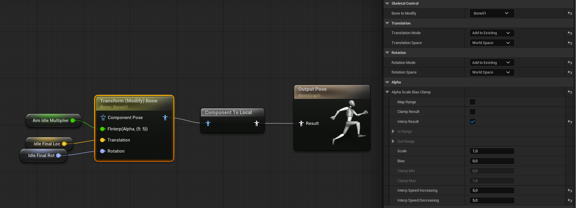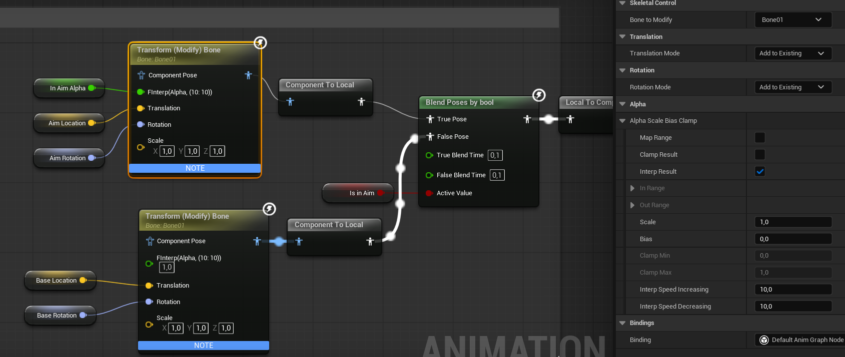 This setup chooses between the Base and Aim locations depending on whether we are in Aim mode or not — simple as that. But now, we need a way to trigger the aim.