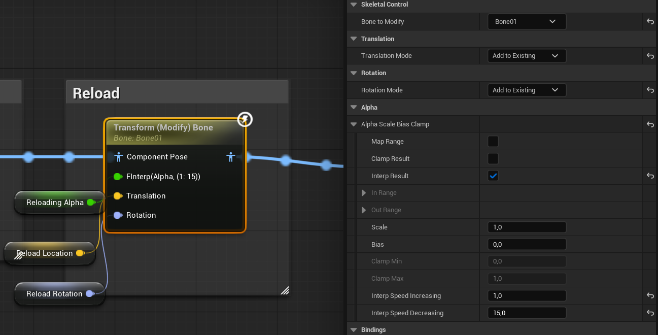 Reload animation works like aiming — offsetting bones to predefined transforms.