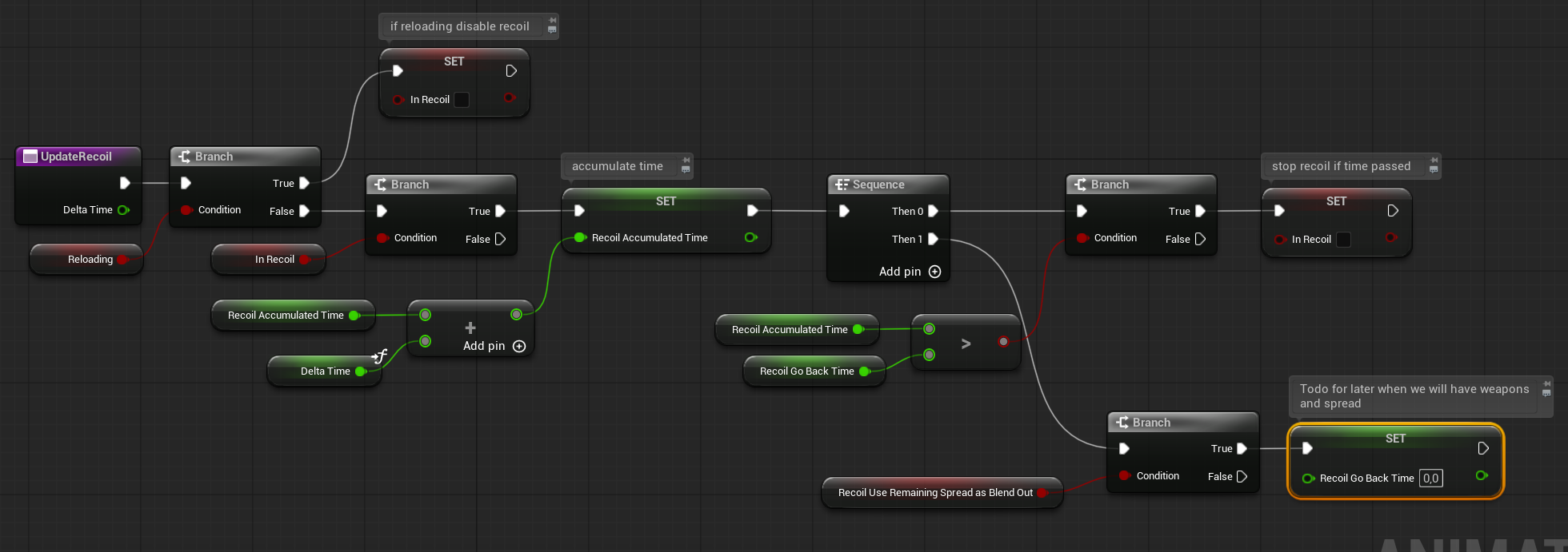Add the UpdateRecoil function to the Blueprint Update Animation event, just like the other update functions.