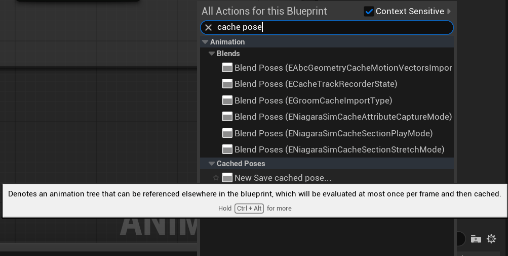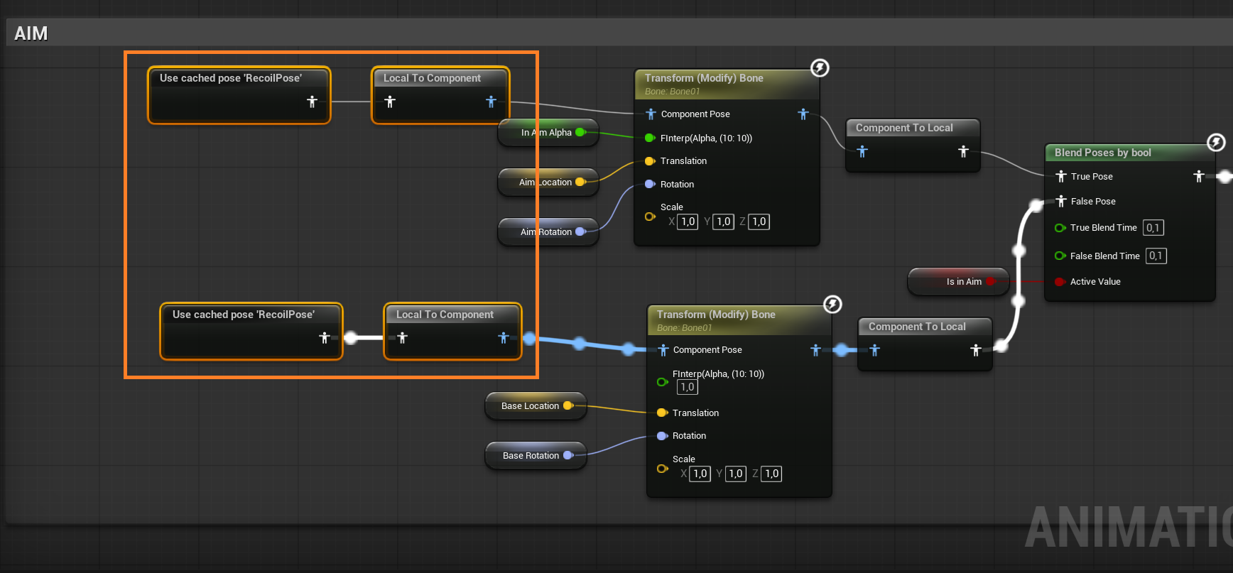Thanks to this, we can use the cached pose multiple times in the graph, since it needs to be used in our previous blend poses controlled by the bool used for the Aim functionality.