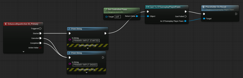 Now, go to your Player Controller and use the primary input to trigger the recoil.