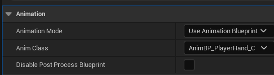 Create a new Animation Blueprint based on the Editor Cube Skeleton and name it AnimBP_Player. Then assign this Anim Blueprint to both your Left and Right hand Skeletal Mesh components.