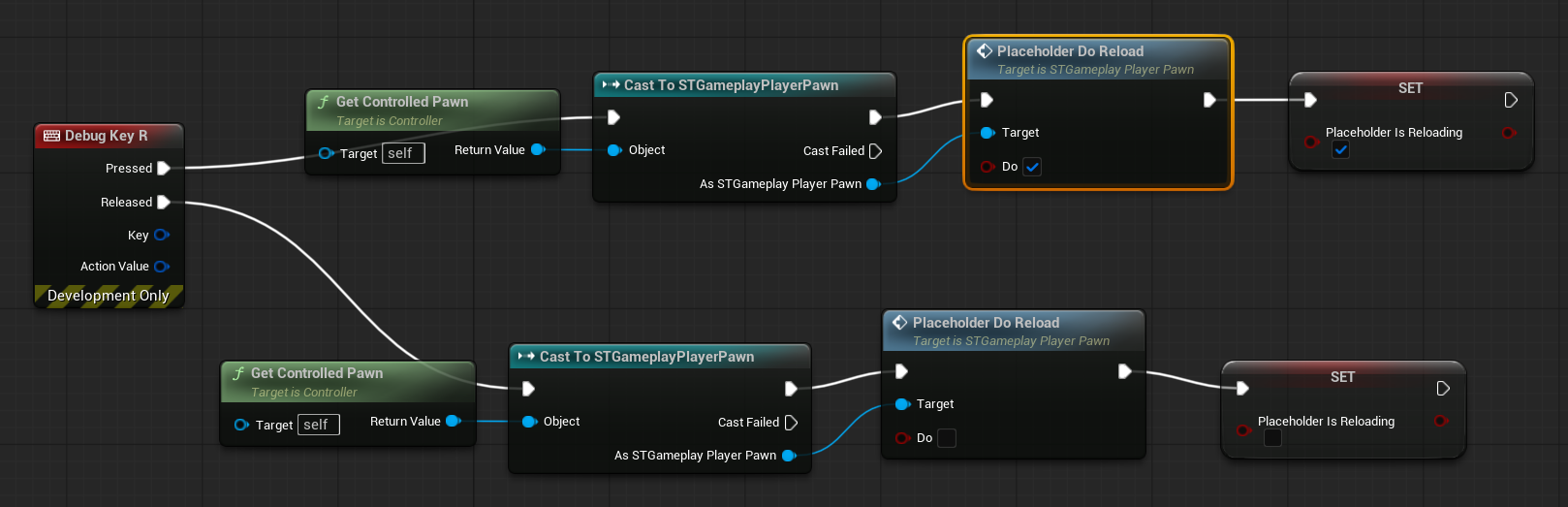 We don’t have an input action set up for reloading yet. We could add one, but for now, I’ll use a debug key to trigger reload instead.