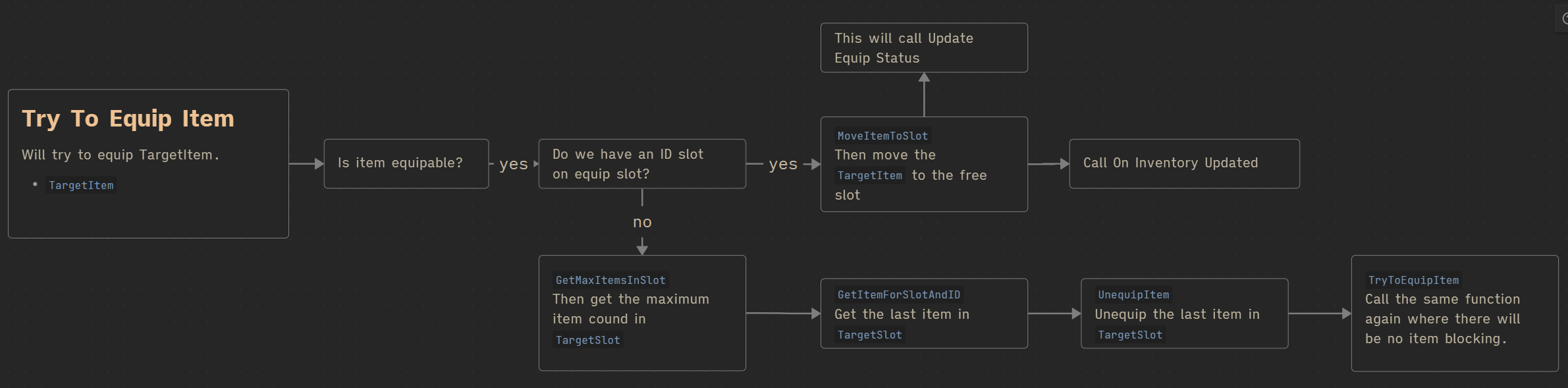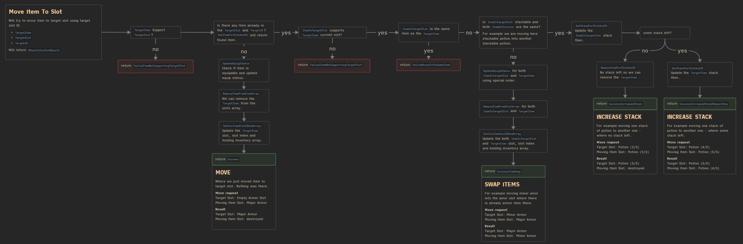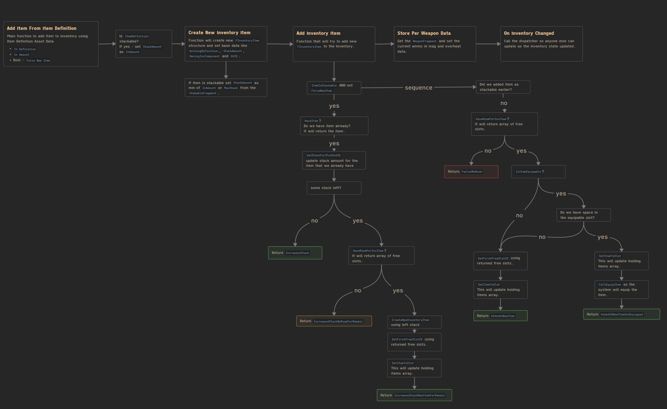 Creating an inventory system is not trivial, which is why I wanted to show almost 100% of the context. Context is critical here: it’s easy to implement a simple inventory that just holds items, but it becomes much more complex when adding additional functionality—and sooner or later, you will need to. Trust me.