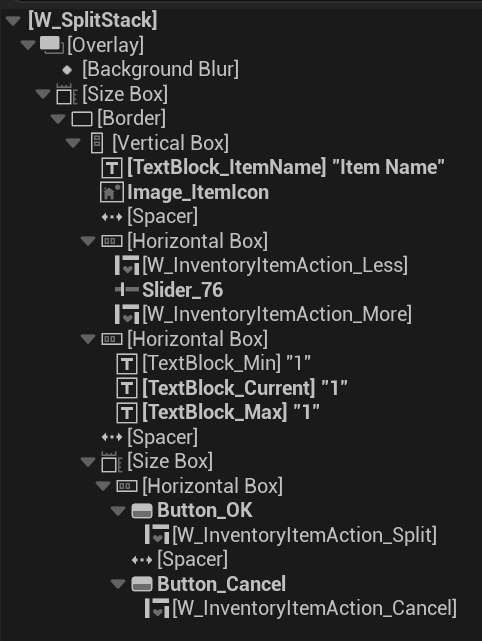 💡 Note: The widget intentionally avoids using a CanvasPanel. Using horizontal boxes, vertical boxes, overlays, and other layout containers instead ensures better adaptability across different screen resolutions.