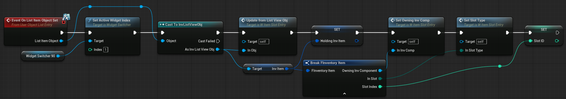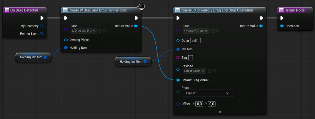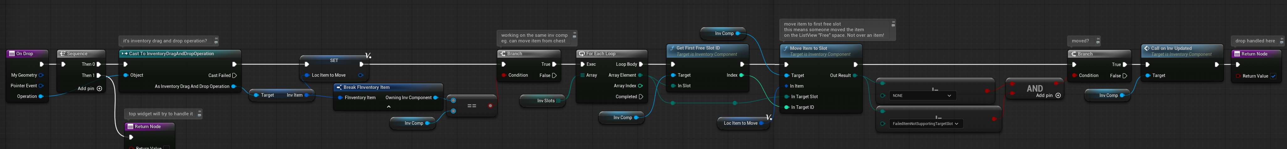 💡 Note: Item-to-item interactions (such as stacking or swapping) are handled by the slot itself, since the slot knows its own contents. For these cases, see the OnDrop function in W_ItemSlotEntry.