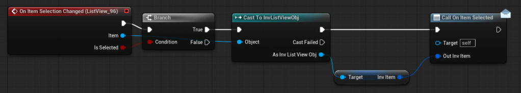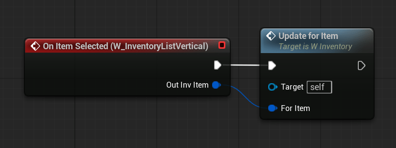 Uses the dispatcher from W_InventoryListVertical to update the inventory widget with the currently selected item.