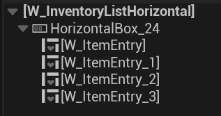Hierarchy: A simple HorizontalBox containing multiple W_ItemSlotEntry widgets. They will be added in runtime.