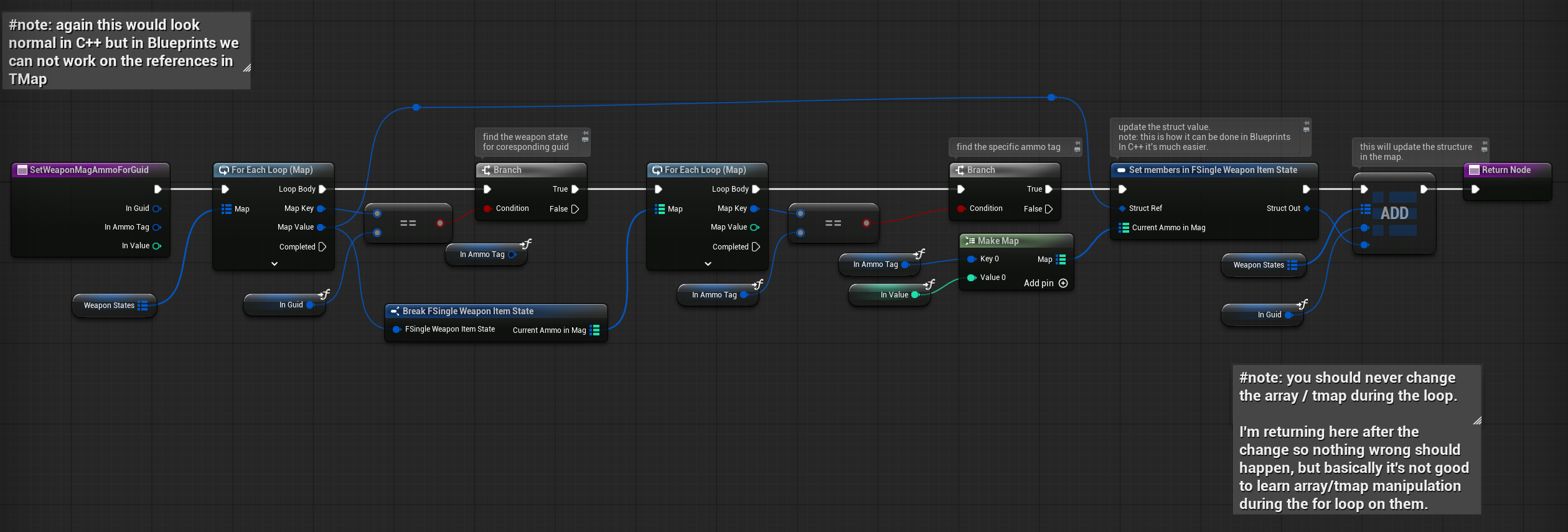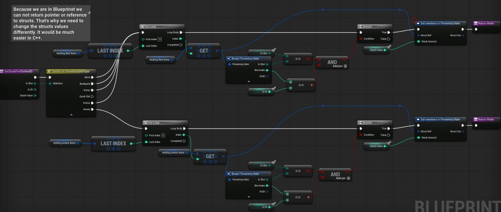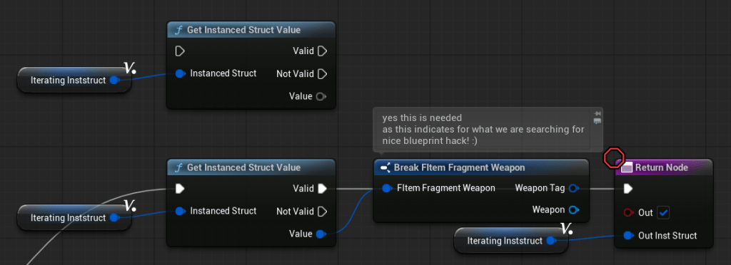 I should have used them earlier in the weapon system, but I’m not a heavy Blueprint user. I’m primarily a C++ programmer, and I wasn’t aware that Instanced Structs were available in Blueprints until recently.