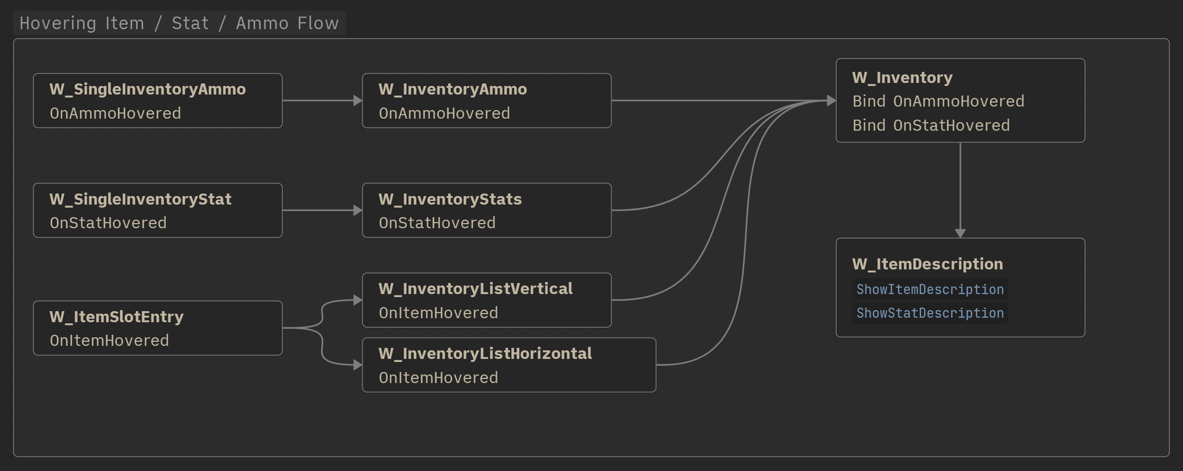 W_ItemSlotEntry’sOnItemHovereddispatcher to call the widget’s own hover-handling function.