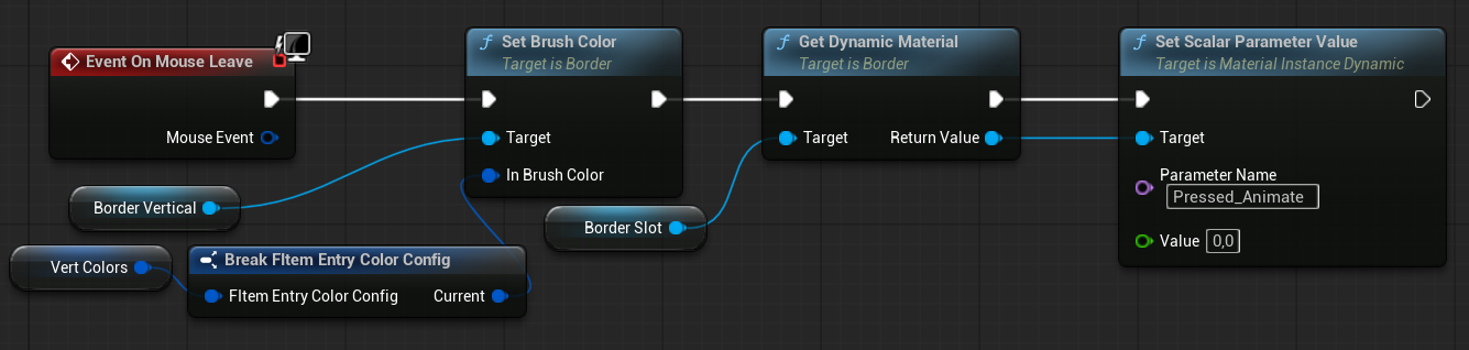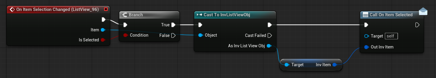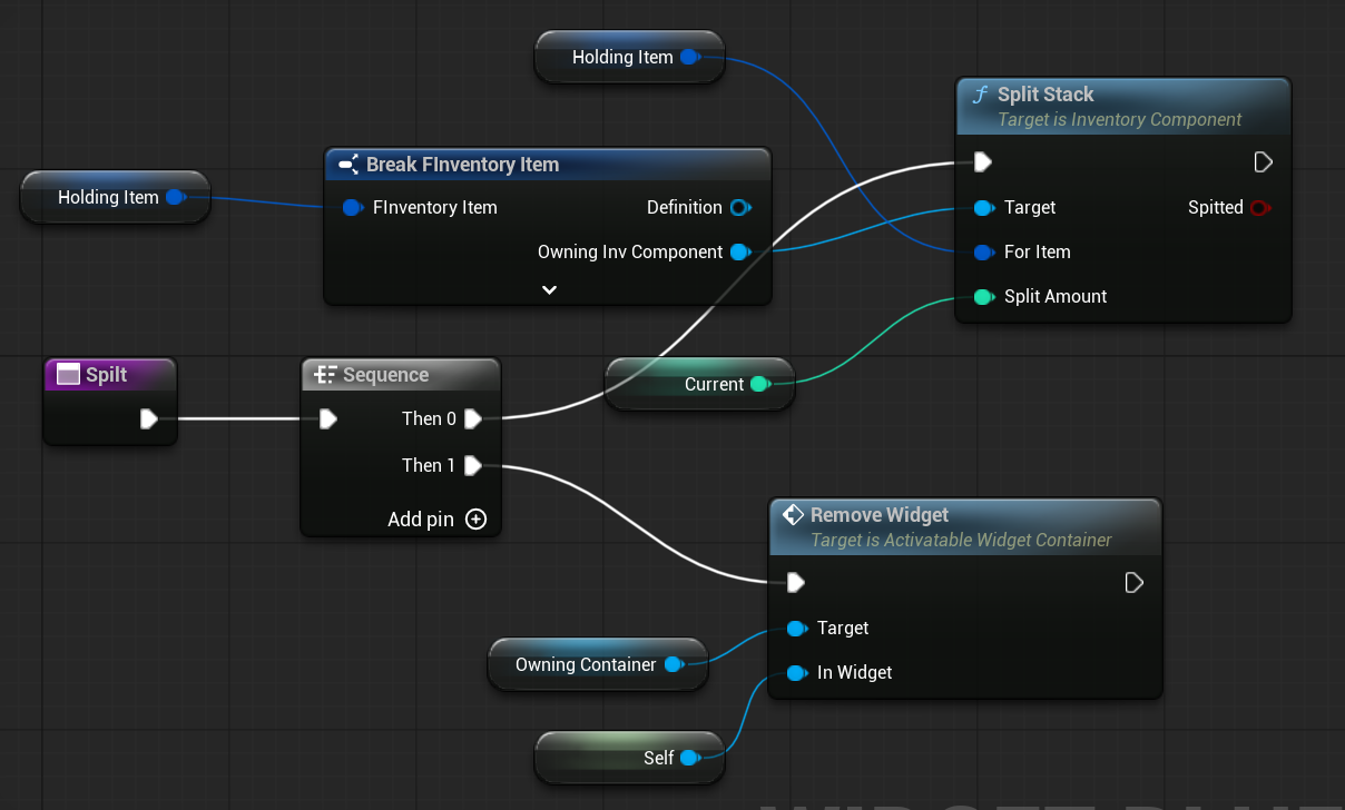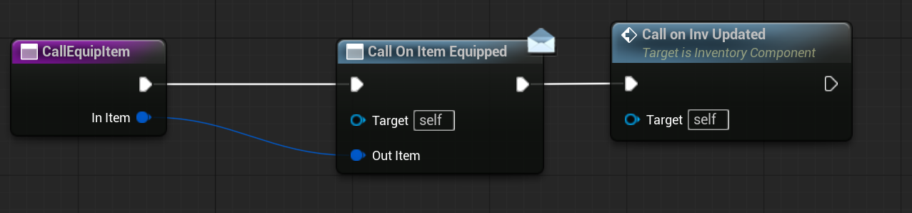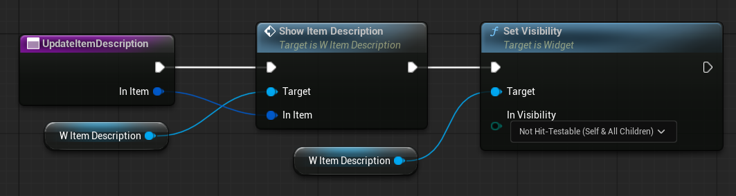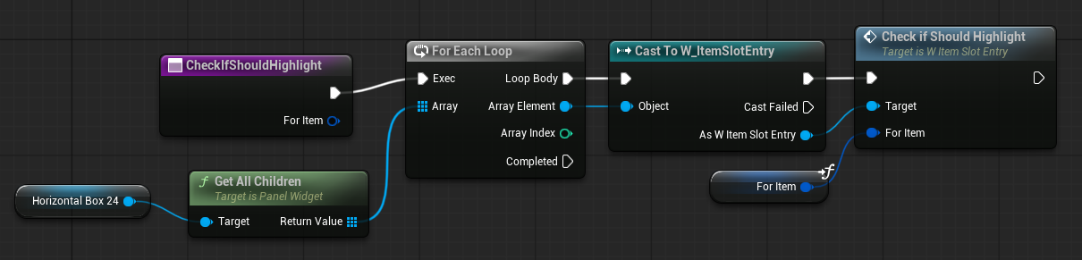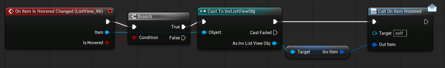 | OnItemHovered | Dispatcher with FInventoryItem output. | Triggered when an item is hovered inside the HorizontalBox. |