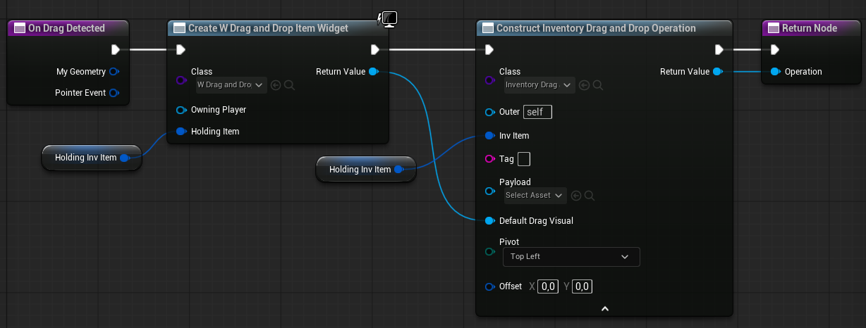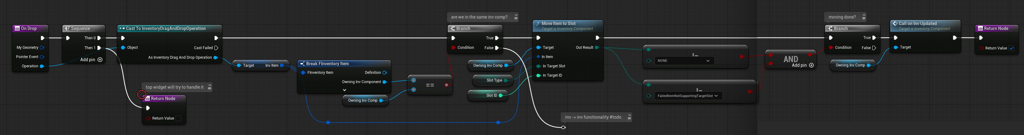 💡 Note: Item-to-item interactions (such as stacking or swapping) are handled by the slot itself, since the slot knows its own contents. For these cases, see the OnDrop function in W_ItemSlotEntry.