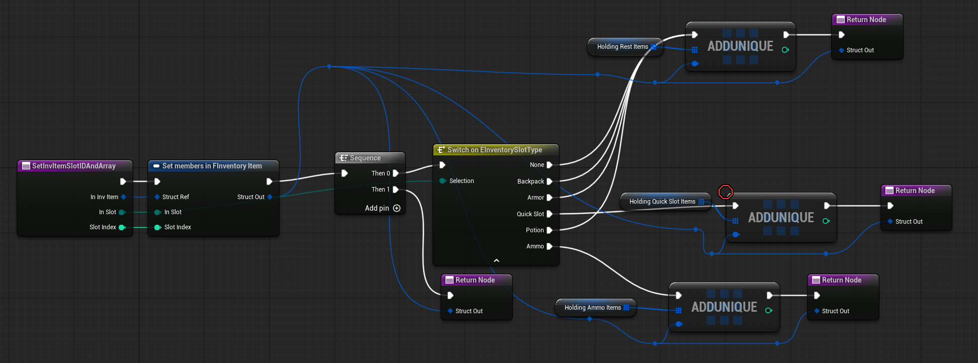 This item uses the Ammo inventory slot, meaning it will be stored in the dedicated ammo array. This allows the system to quickly find specific ammo types without iterating through the entire backpack. - Ammo Fragment: