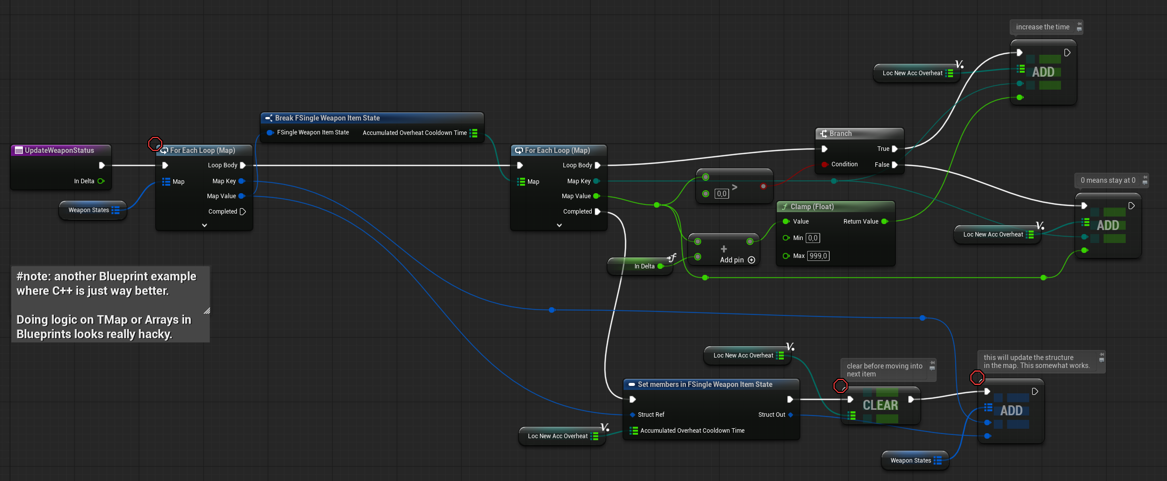 I should have used them earlier in the weapon system, but I’m not a heavy Blueprint user. I’m primarily a C++ programmer, and I wasn’t aware that Instanced Structs were available in Blueprints until recently.