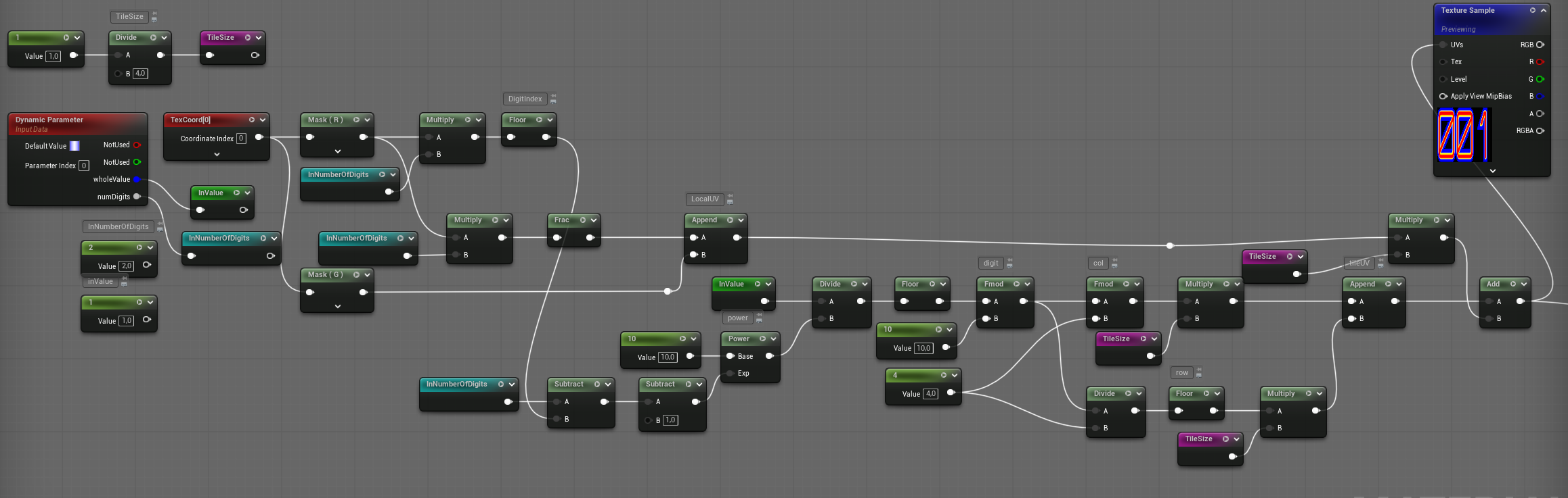 NumberOfDigitsdetermines how the UV space is split horizontally- We extract each digit from the value based on