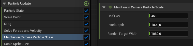 Finally, in the Particle Update stage, we use a module to scale the particle based on its distance from the camera.