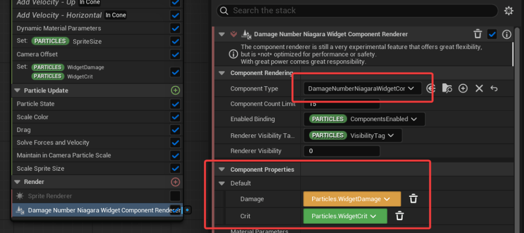 To pass data into the widget, we’ve created a custom component called DamageNumberNiagaraWidgetComponent. This component receives data from Niagara, including the damage value and critical hit flag.
