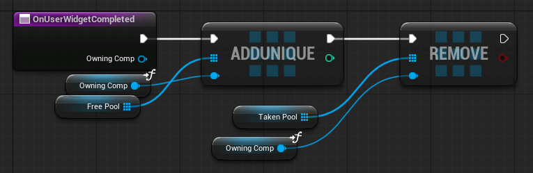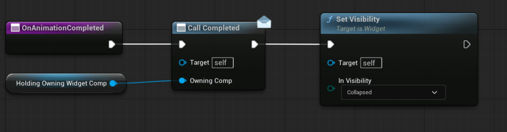 The widget knows when its animation finishes, and it fires a Completed dispatcher when that happens. You can bind to animation events directly in UMG, making it easy to notify the manager when the widget has finished its job and can be returned to the pool.