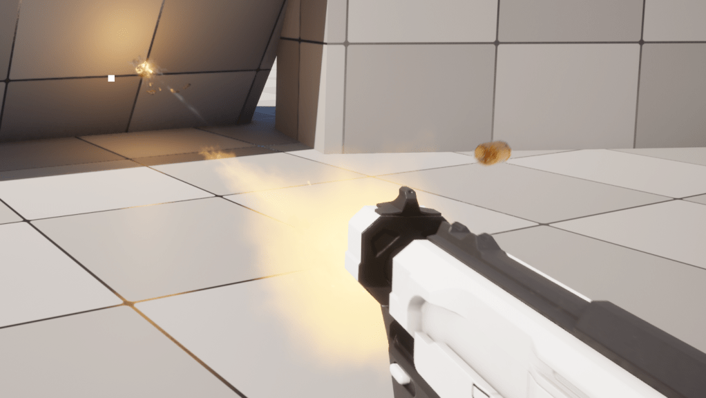 Additionally, the dot product is used to determine whether the ricochet effect should be spawned at all. If the angle between the incoming direction and the surface normal isn’t within a certain threshold (i.e., not “sharp” enough), the effect is skipped. This helps avoid unrealistic ricochets on flat or glancing hits.
