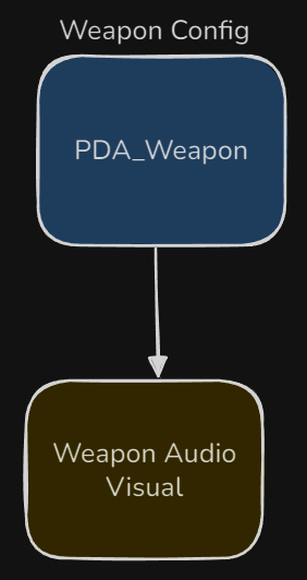 - Weapon – Configures the audiovisual aspects of the weapon: mesh, Niagara/audio actions for each mode (firing, reloading, aiming, etc.), and weapon placement.