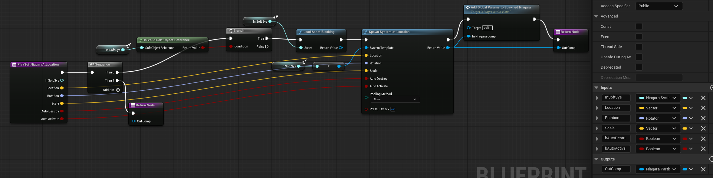 Another solid practice is to define global parameters that are passed to every Niagara and audio effect you spawn. These can include: