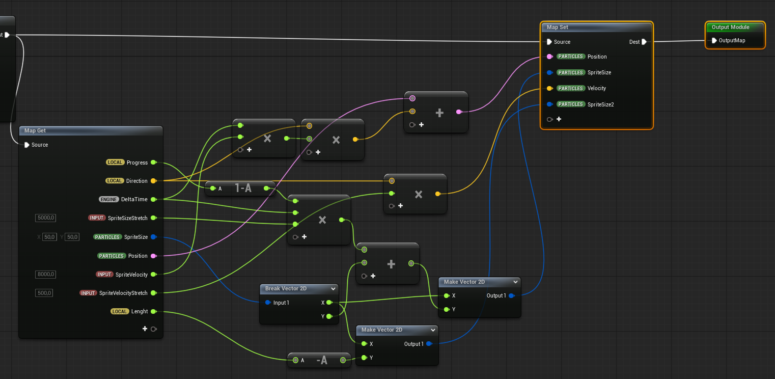 Here is the magic and you should invest some time to learn how this effect was made because it’s not using Beam particle renderer just a sprite which is streched / moved to the hit location.