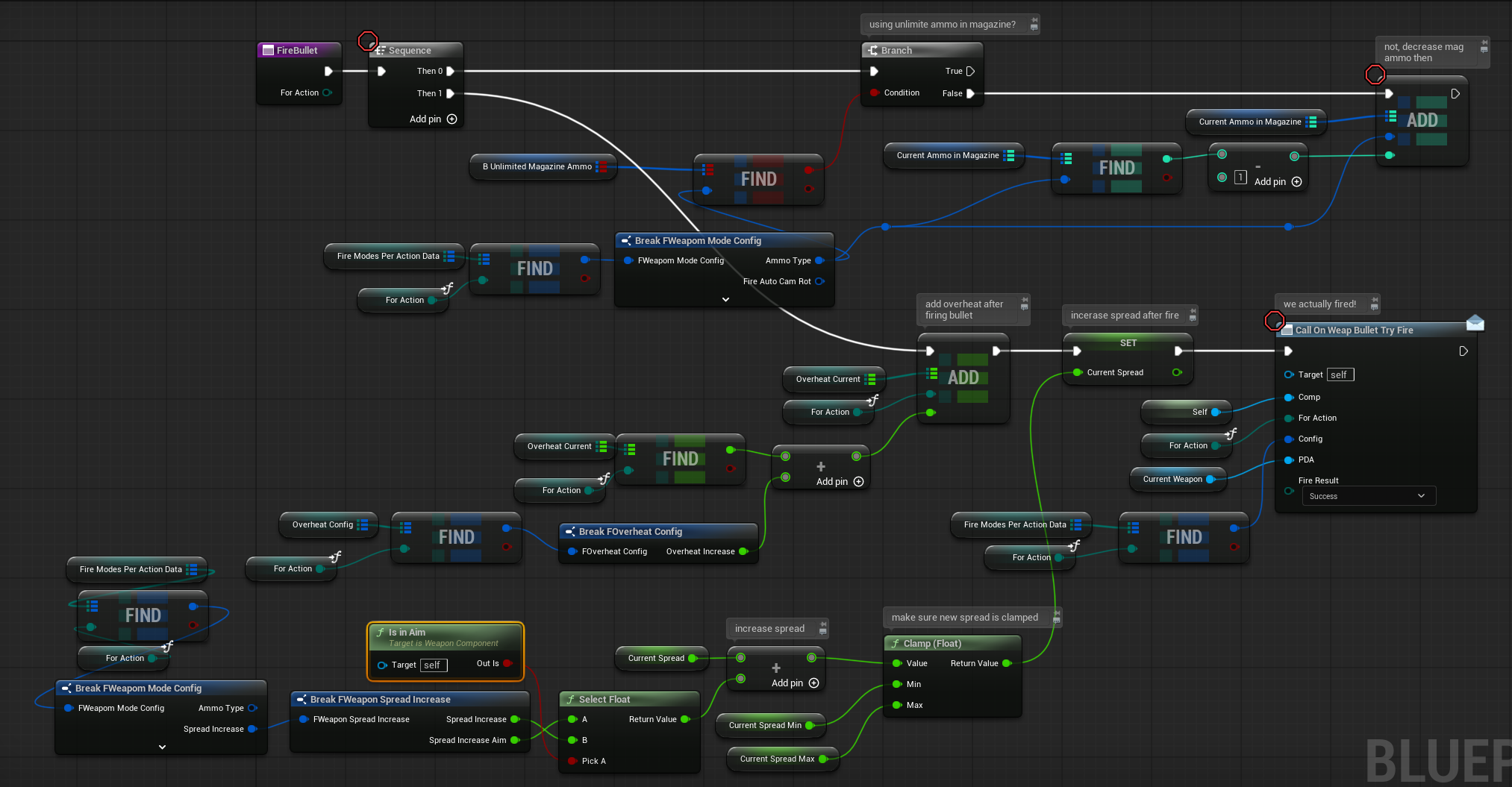 Let’s take a look at the fire modes inputs. Open the WeaponComponent and find those functions.